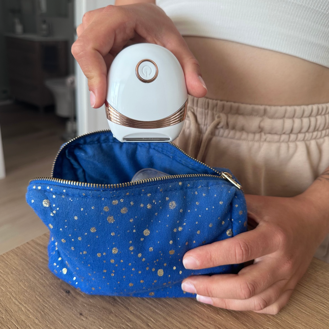Bewahre deinen Rasierer an einem trockenen Ort auf. So bleibt er lange hygienisch und leistungsstark.